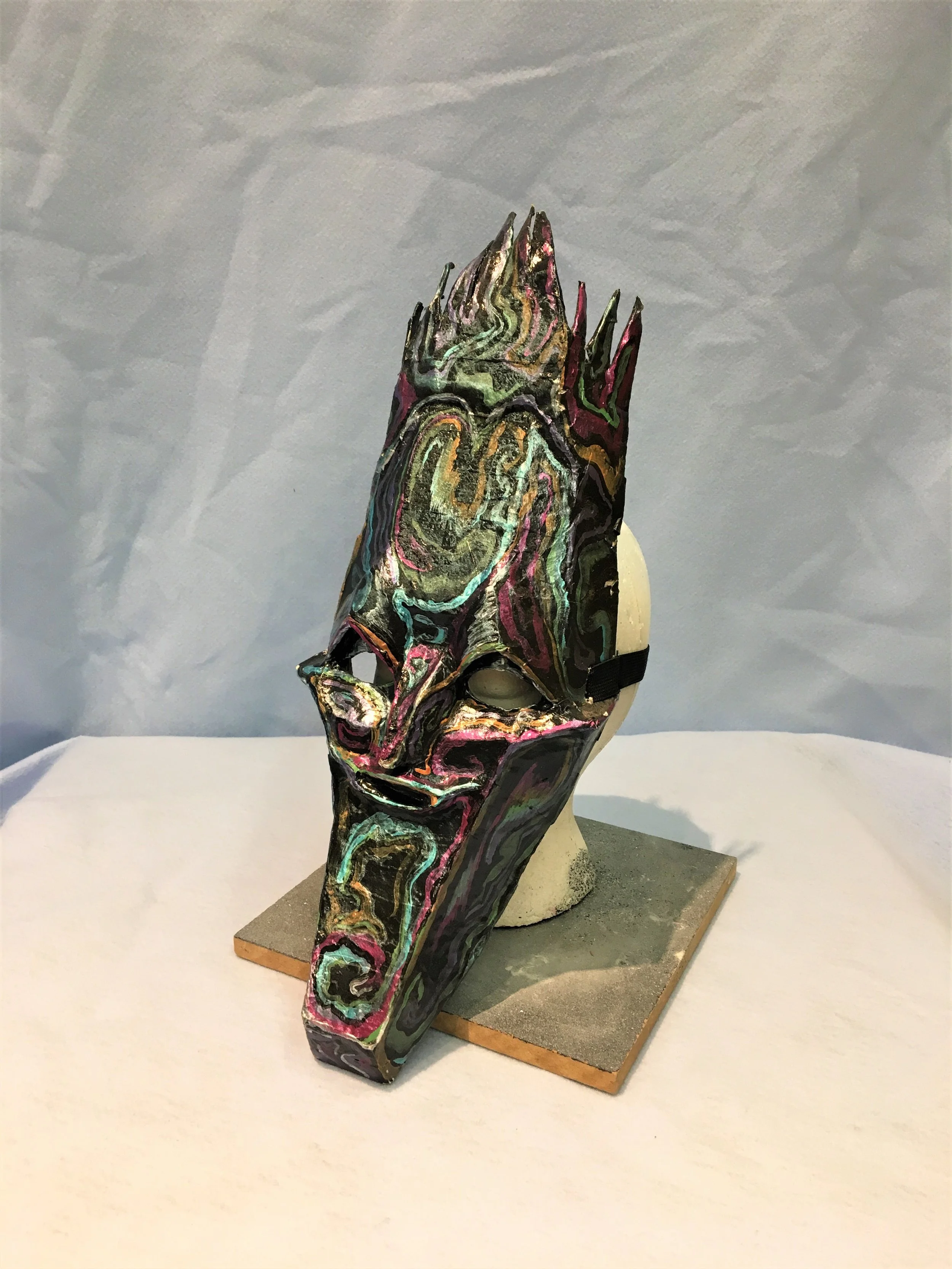 Hades mask was made from cardboard and papier mache. Painted with acrylic paint.